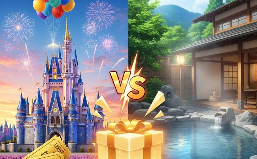数ある景品の中でも、常に人気ランキングの上位を争い、会場の歓声を誘うのが「ディズニーペアチケット」と「温泉旅行」です。夢の国で過ごす非日常の体験と、日頃の疲れをゆっくりと癒やせる至福の時間。どちらも大変魅力的で、幹事様としては「一体どちらを用意すれば、参加者の皆様により一層喜んでいただけるのだろうか」と頭を悩ませてしまうことも多いはずです。