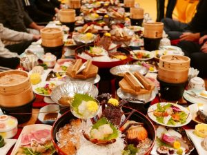 その後は、参加者同士が自由に交流し食事を堪能する「歓談」の時間です(この間に余興を実施)。