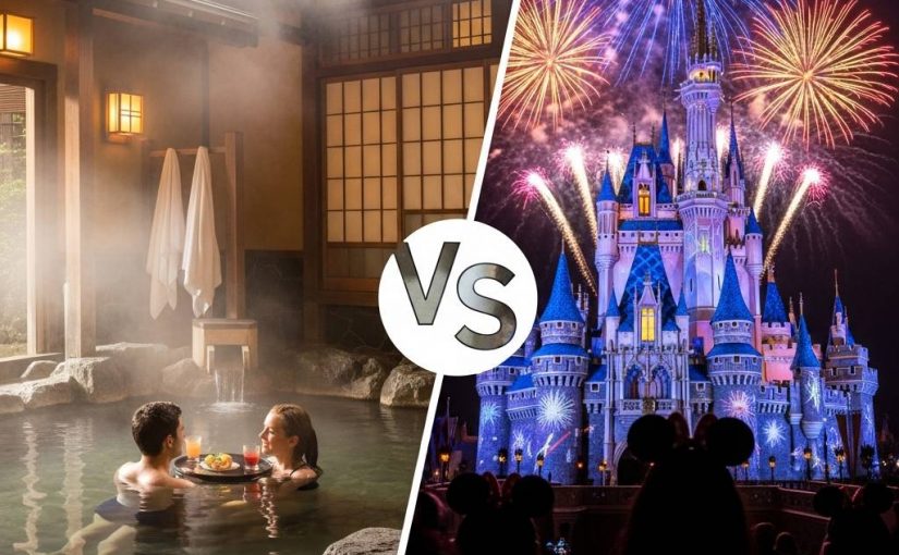両者ともにSNS映えする思い出を提供できますが、温泉旅行は露天風呂からの景色や豪華な会席料理など、大人向けの上質な体験を提供。ディズニーリゾートはキャラクターとの写真や華やかなパレードなど、より視覚的にアピールできるコンテンツが豊富です。