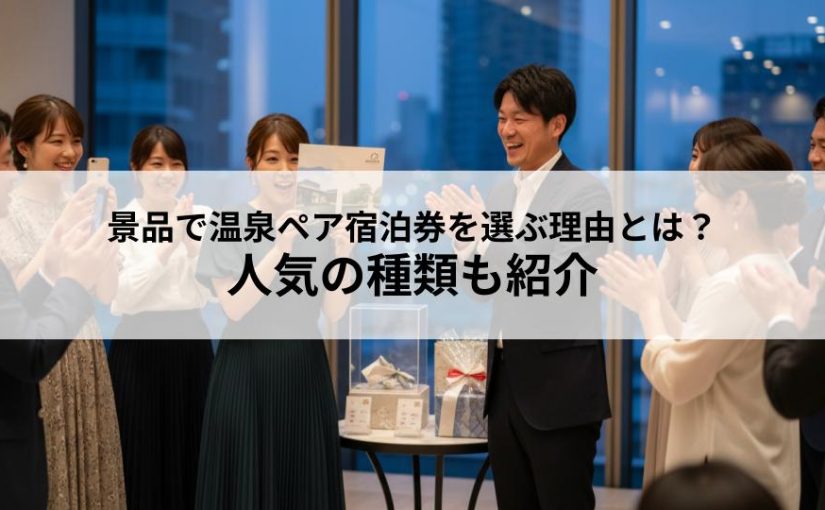 豪華な食事や家電なども喜ばれますが、温泉ペア宿泊券は、参加者にとって非日常の体験やリラックスできる時間そのものをプレゼントできるため、記憶に残りやすく、特別な思い出となるでしょう。