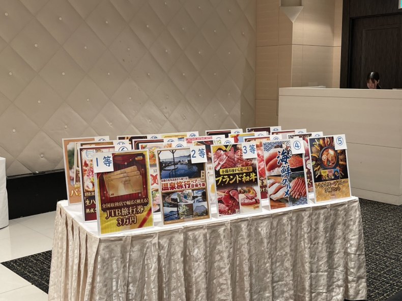 3年前より、物価高騰により若干景品セット内容のレベルが下がった気がしますが、概ね好評でした。